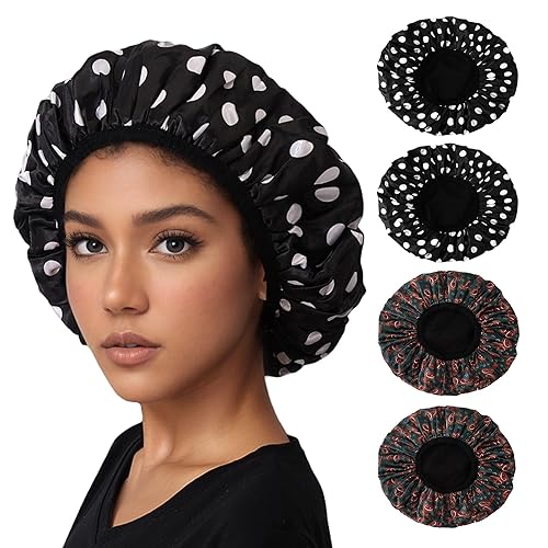 Terry Lined Shower Cap - Waterproof Reusable Hair Cover