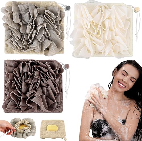 3-Pack Soap Loofah Pouch - 2-in-1 Exfoliating Bar Soap Holder