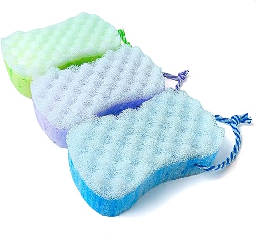 3-Pack Exfoliating Bath Sponges | Reusable Body Loofah Pouf