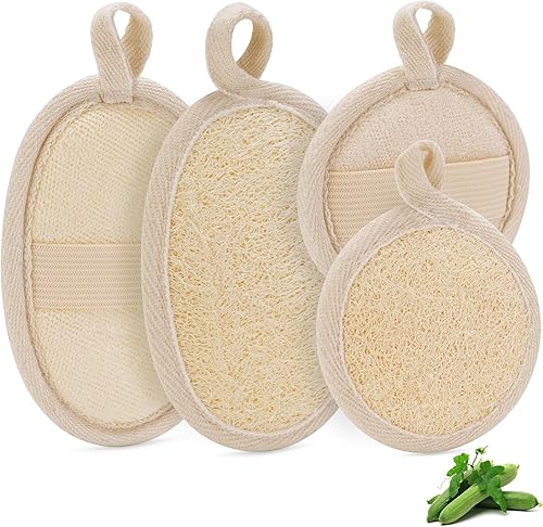 Natural Loofah Sponge & Scrubber Set (4Pcs) - Body & Face