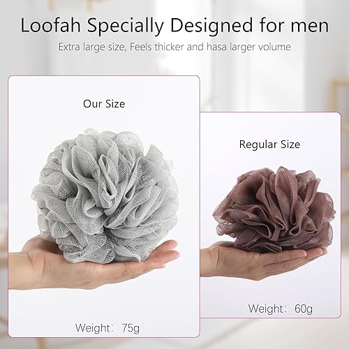 XL Loofah Bath Sponge - 75g Exfoliating Shower Pouf, 6-Pack