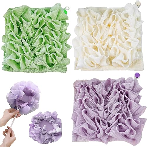 Exfoliating Bath Sponge Set - 3 Reusable Loofah Scrubbers