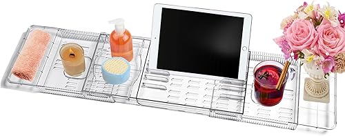 Clear Acrylic Bathtub Tray - Fits Most Tubs, Spa Organizer