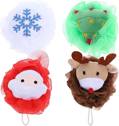 Christmas Loofah Bath Balls 4-Pack - Santa Shower Sponge