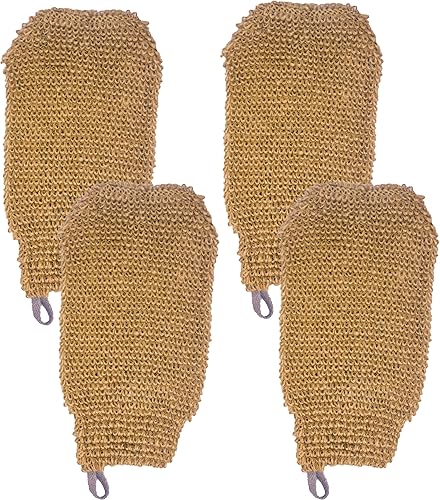 Hemp Exfoliating Bath Mitts (4-Pack) - Rougher Loofah Gloves