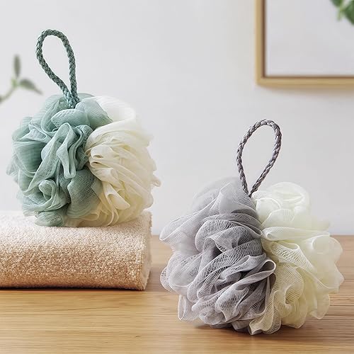 2Pcs Soft Loofah Sponges for Women - Gray & Pink Bath Sponges