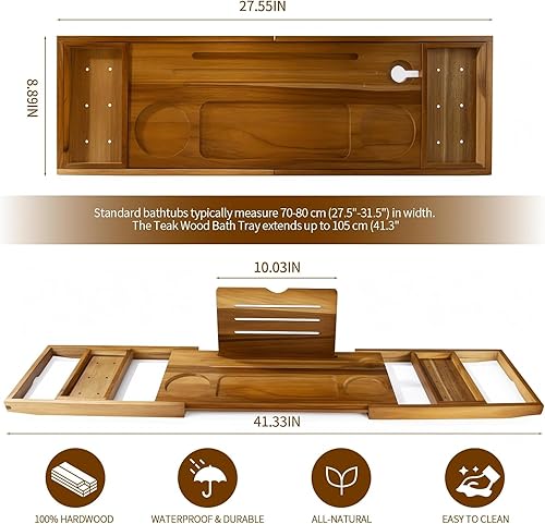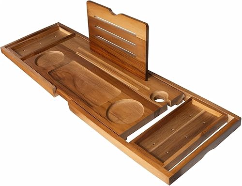 Expandable Teak Bathtub Tray Caddy | Adjustable Wood Bath Table
