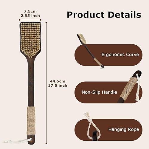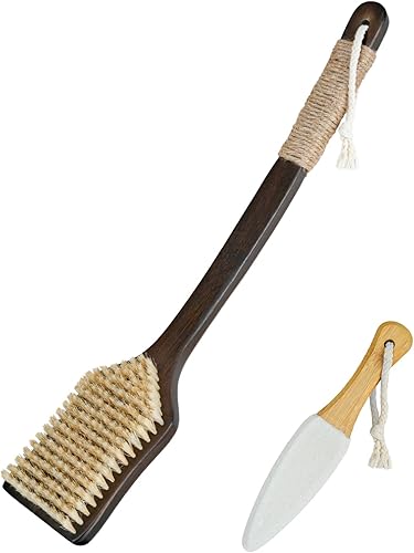 Boar Bristle Back Scrubber with Long Handle - 2 Pack