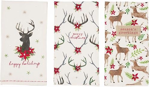 Christmas Deer Lodge Kitchen Hand Towel 28x21 - Mud Pie