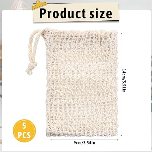 5-Pack Sisal Soap Saver Bags - Exfoliating Mesh Pouch