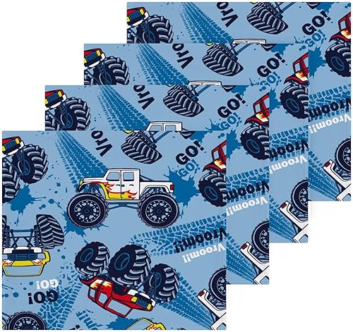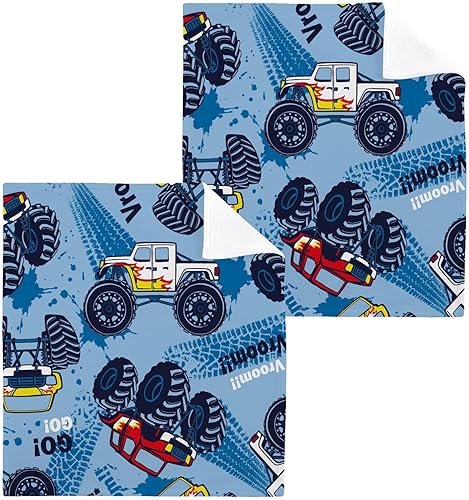 Monster Truck Kids Bath Washcloths - 4 Pack Soft Cotton Towels