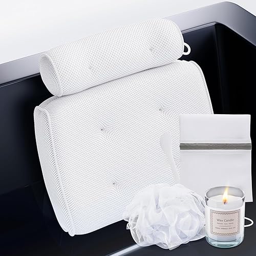 Luxury Bath Pillow Set with Candle & Loofah | White
