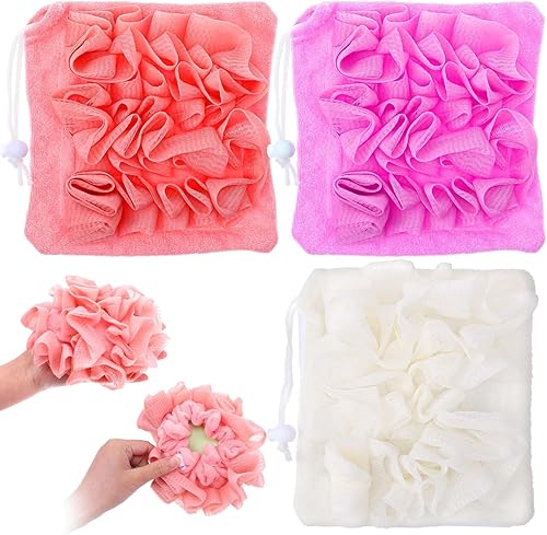 3-Pack Loofah Soap Pouches with Drawstring | Bath & Shower