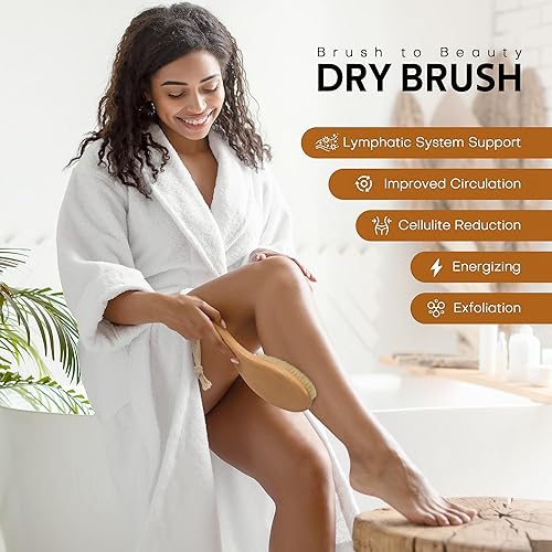 Natural Bristle Dry Body Brush for Exfoliation & Cellulite