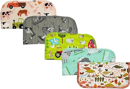 Printed Flannel Wipes Set of 5 - Farm Life 8x8"