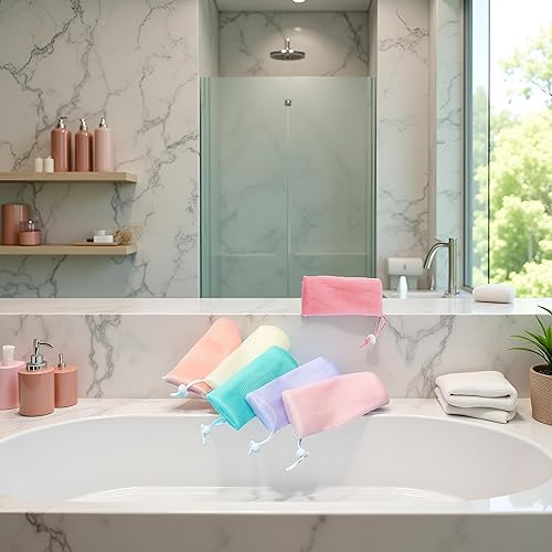 6PCS Exfoliating Soap Pouches - Colorful Foam Net Bags