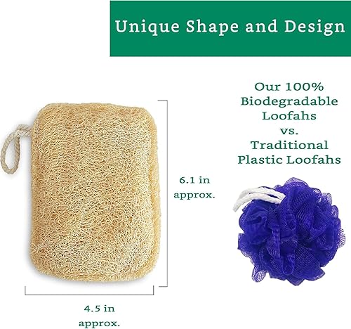 Natural Loofah Sponge 3-Pack - Biodegradable Body Scrubber