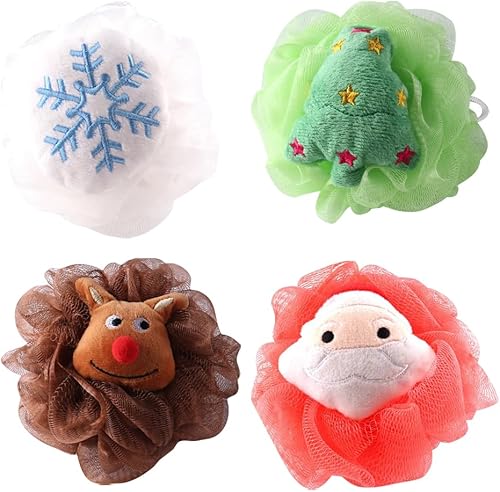 Christmas Bath Sponges 4-Pack - Santa & Snowflake Scrubbers