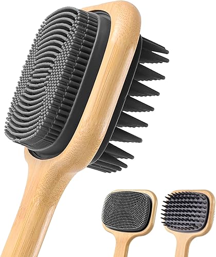 Silicone Back Scrubber with Bamboo Handle - Dual Sided