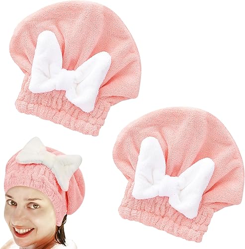 Blue Hair Drying Turban with Bow - 2Pcs Reusable Towel Cap