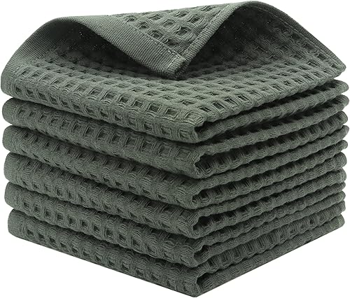 Cotton Waffle Wash Cloths 6 Pack - Quick Dry Face & Body Towels