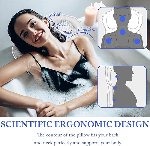 Ergonomic Bath Pillow with 6 Suction Cups - 4D Air Mesh