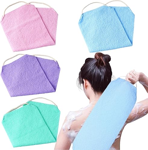 4PCS Back Scrubber Set with Handles - Nylon Exfoliating Washcloth
