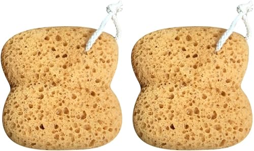 Yellow Honeycomb Shower Sponges 2-Pack with Hanging Loop