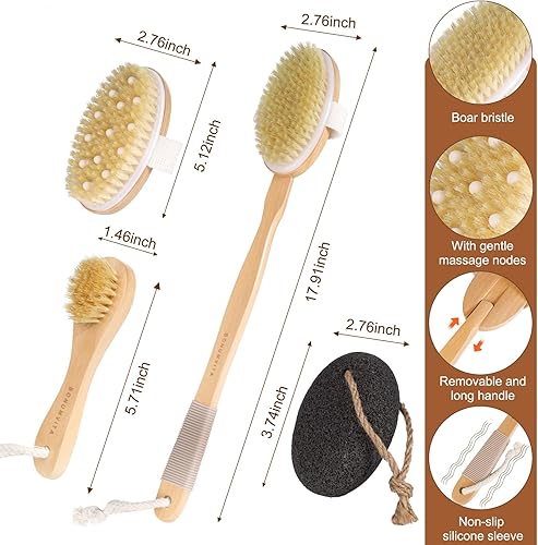 Boar Bristle Body Brush with Detachable Handle for Dry Brushing