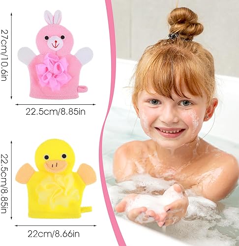 Kids Bath Gloves - 2Pcs Animal Loofah (Duck & Rabbit)