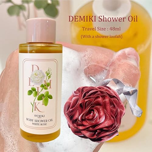 DEMIKI Hydrating Shower Oil & Loofah Sponge for Sensitive Skin