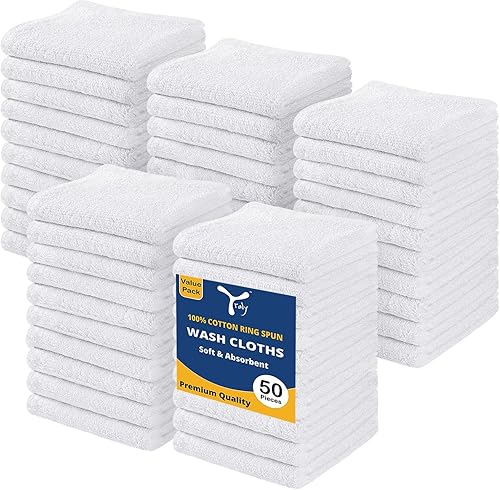 Premium Cotton Washcloths 50-Pack - Soft Face & Body Towels