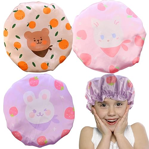 Kids Rabbit Shower Cap - 3 Pack Cartoon Animal Bath Hats