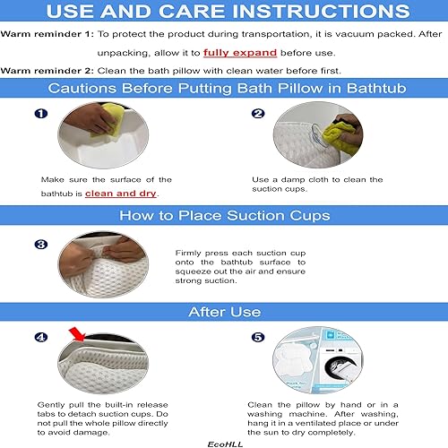 Bath Pillow with 6 Suction Cups - Neck & Back Support