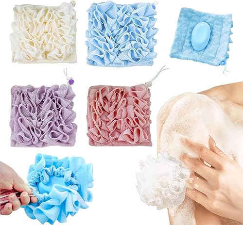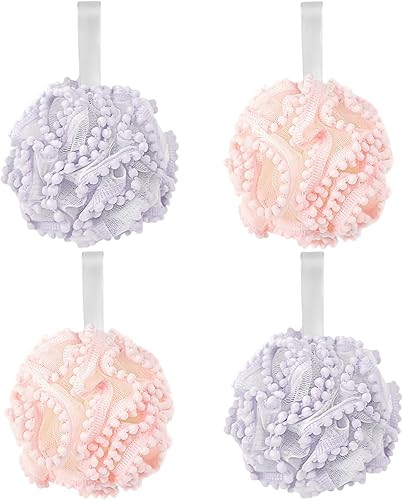 Exfoliating Shower Sponge Ball - 4Pcs Pink & Purple Loofah