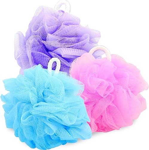 Loofah Bath Sponge 3-Pack - Soft Mesh Shower Poufs