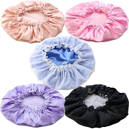 Reusable Satin Shower Cap - 5 Pack Waterproof Bath Hair Hat