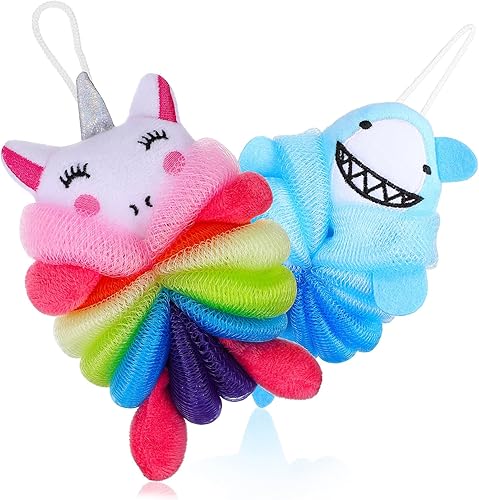 Kids Shower Loofahs - Cute Shark & Unicorn Bath Sponges