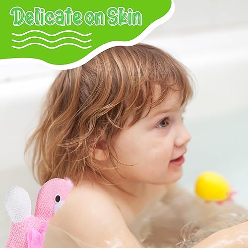 Kids Bath Gloves 4-Pack - Animal Loofah Body Scrubbers