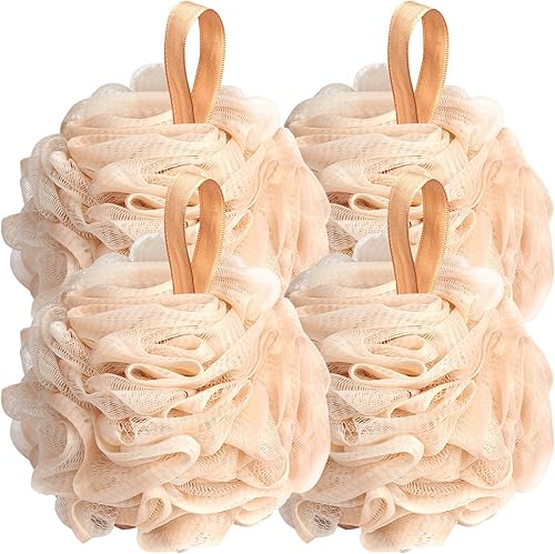 4-Pack Loofah Bath Sponges - Soft Exfoliating Shower Pouf