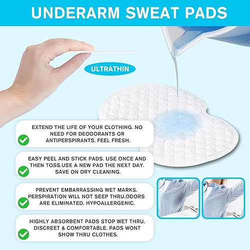 Disposable Underarm Sweat Pads - 100 Count, Invisible Protection