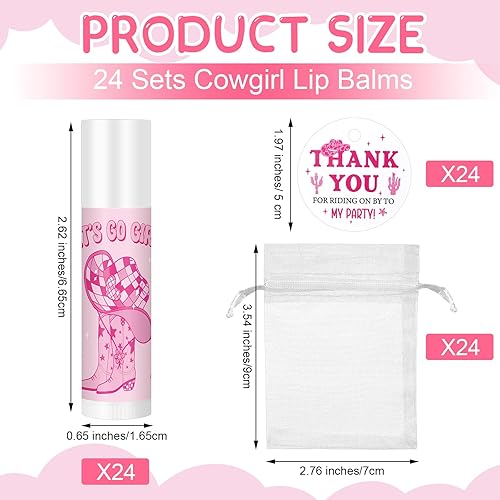 Cowgirl Party Favors Set - 24 Lip Balms, Thank You Cards & Bags