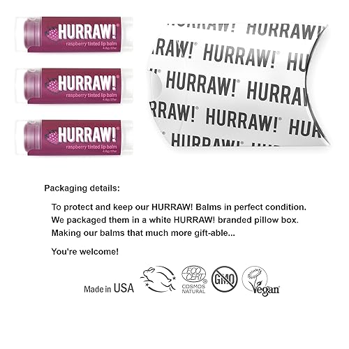 Hurraw! Raspberry Tinted Lip Balm 3-Pack | Vegan & Organic