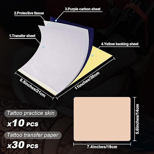 Tattoo Practice Kit - 66Pcs Fake Skin & Transfer Paper