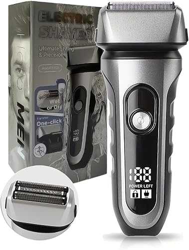 Men's Electric Razor: 2 Floating Blades, LED Display, Wet/Dry