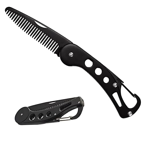 Black Stainless Steel Folding Beard Comb - Portable Grooming Kit