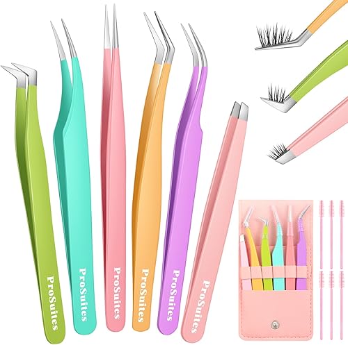 6PC Lash Extension Tweezers Set with Applicator Tool