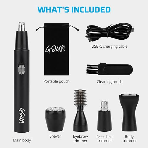 GOUN 4-in-1 Nose Hair Trimmer - Painless USB Rechargeable