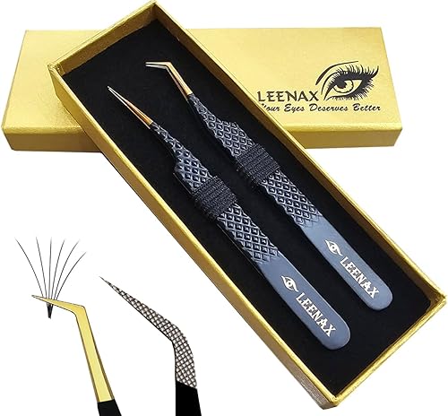 Pink Eyelash Extension Tweezers Set - 2PC Precision Volume