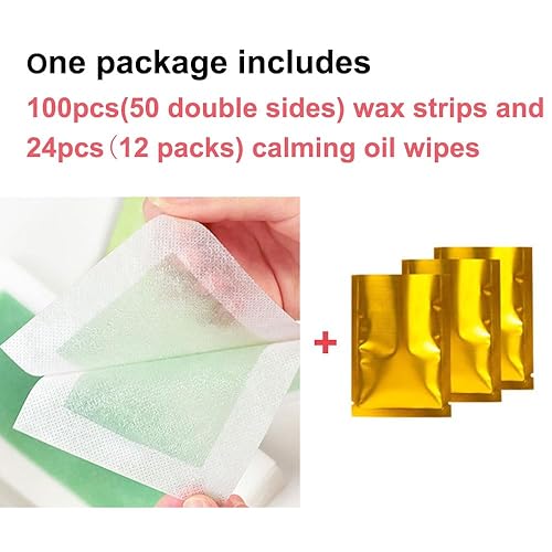 100 Wax Strips + 24 Calming Oil Wipes for Hair Removal